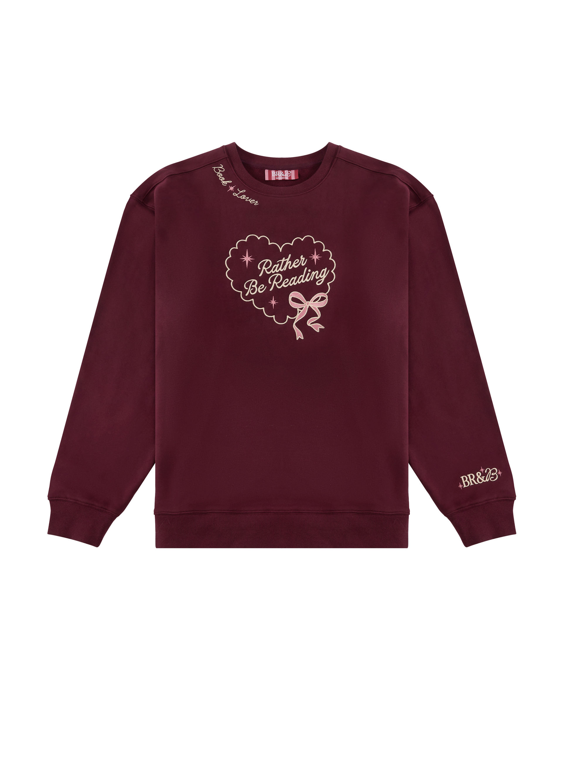 For when your dream night out is actually a night in with your latest book boyfriend. This rich wine-colored sweatshirt is embroidered with “Rather Be Reading” in the cutest heart + bow detail — plus little love notes to book lovers on the collar and cuff. It’s giving cozy, cute, and chapter 34 energy. 💘📖