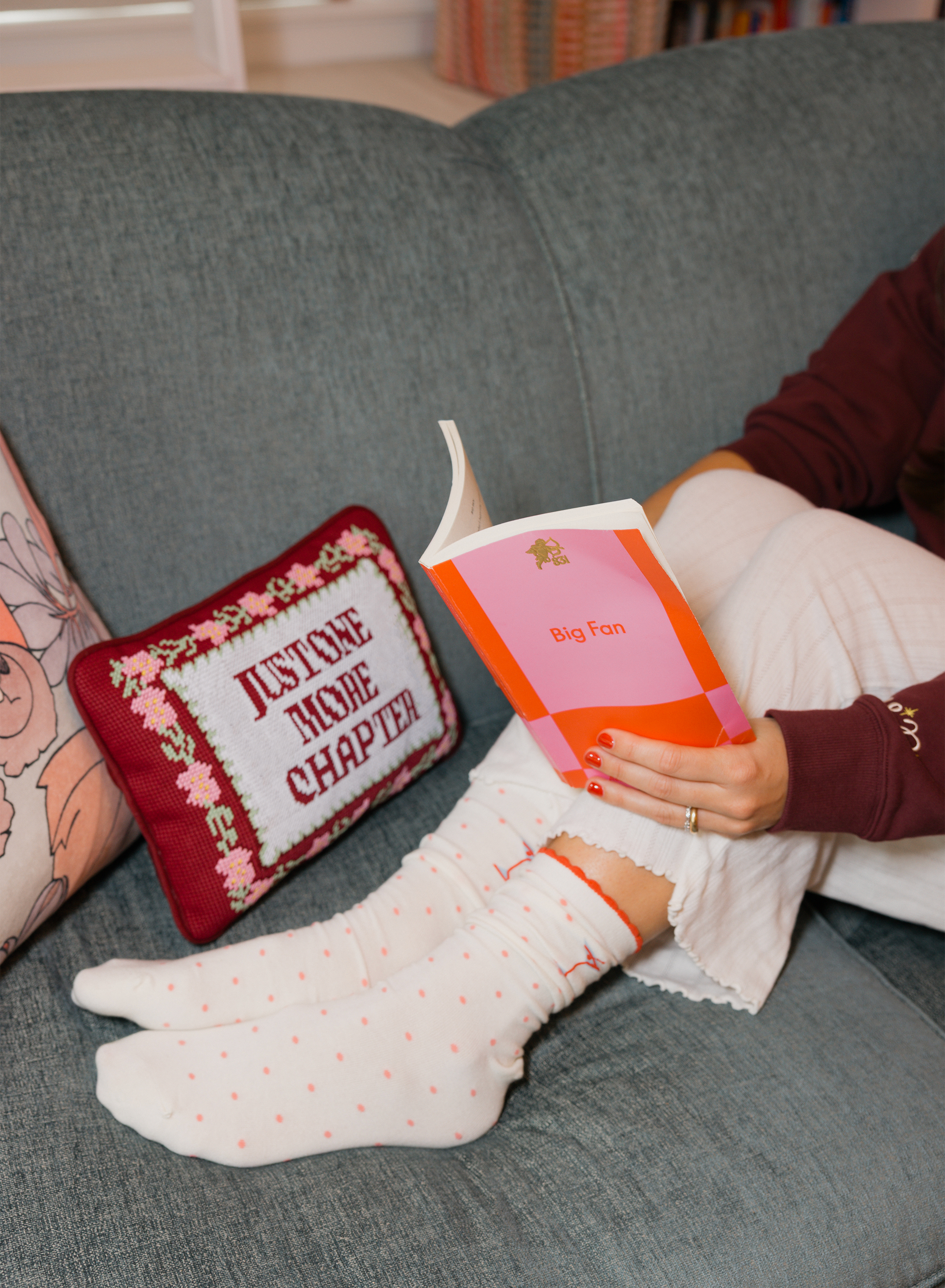 The ultimate bookworm battle cry, now in pillow form. With its vintage needlepoint style and bold “Just One More Chapter” design, this cozy accent is perfect for your reading nook, couch, or anywhere you’re known to get lost in a story.